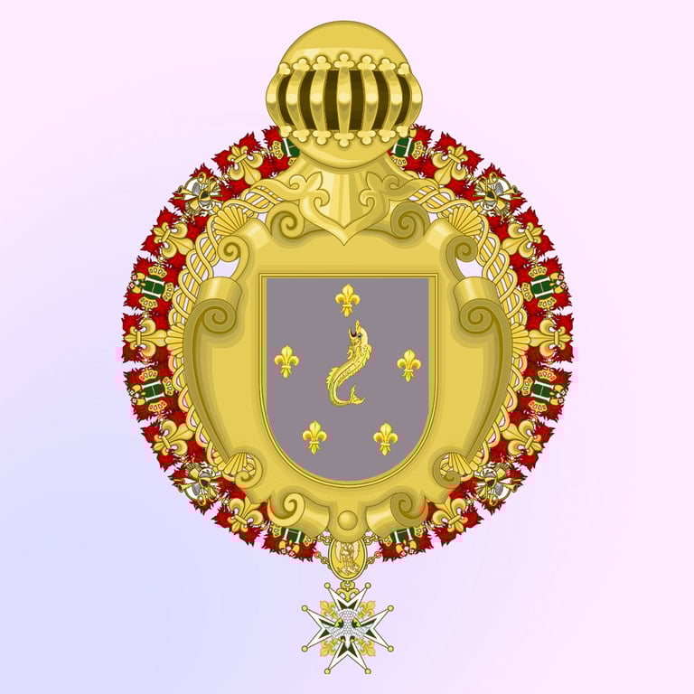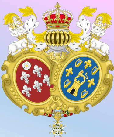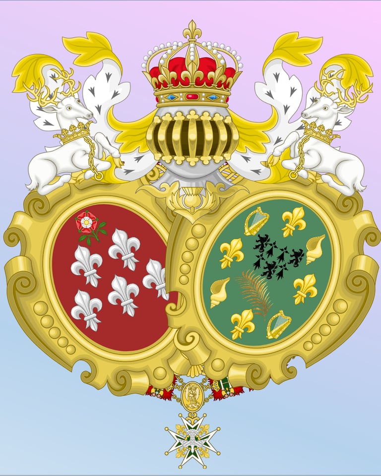 La couronne rouge de la couronne de France. Le souverain porte le titre de « bienheureux émancipateur de la foi et des royaumes suprêmes de l'Église de France et des Gaules ». Ces titres remontent au règne du roi Charles Ier, qui s'est vu octroyer initialement le titre de « Bénédiction de la foi » a réuni la France en un seul culte et d'autres confessions ayant un accès global à la religion des Gaules.