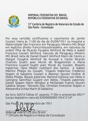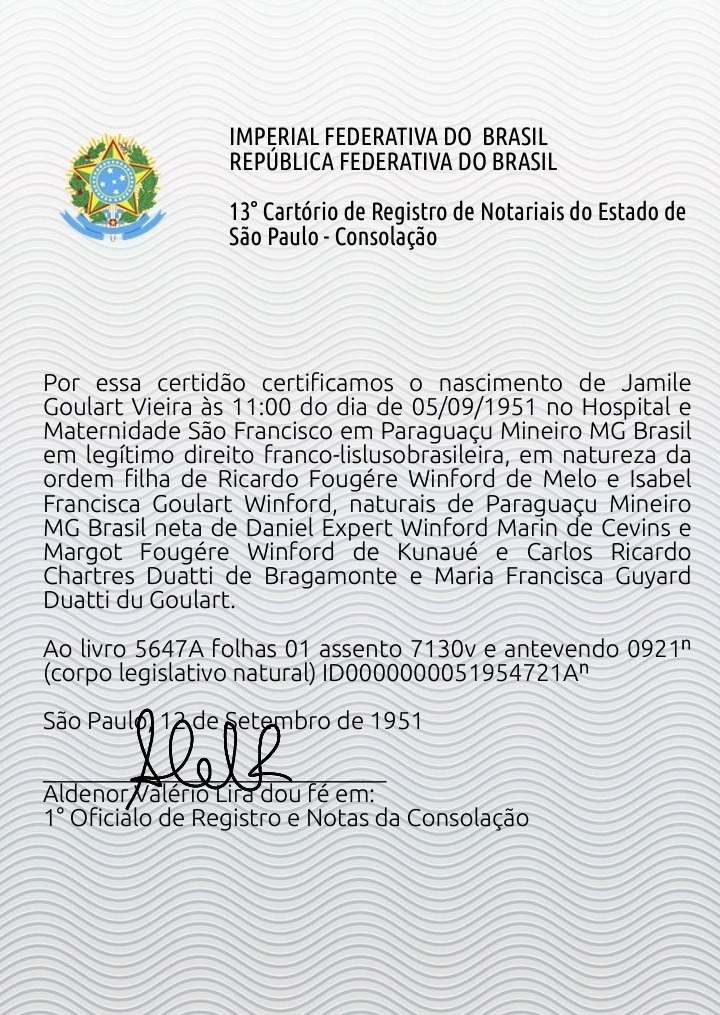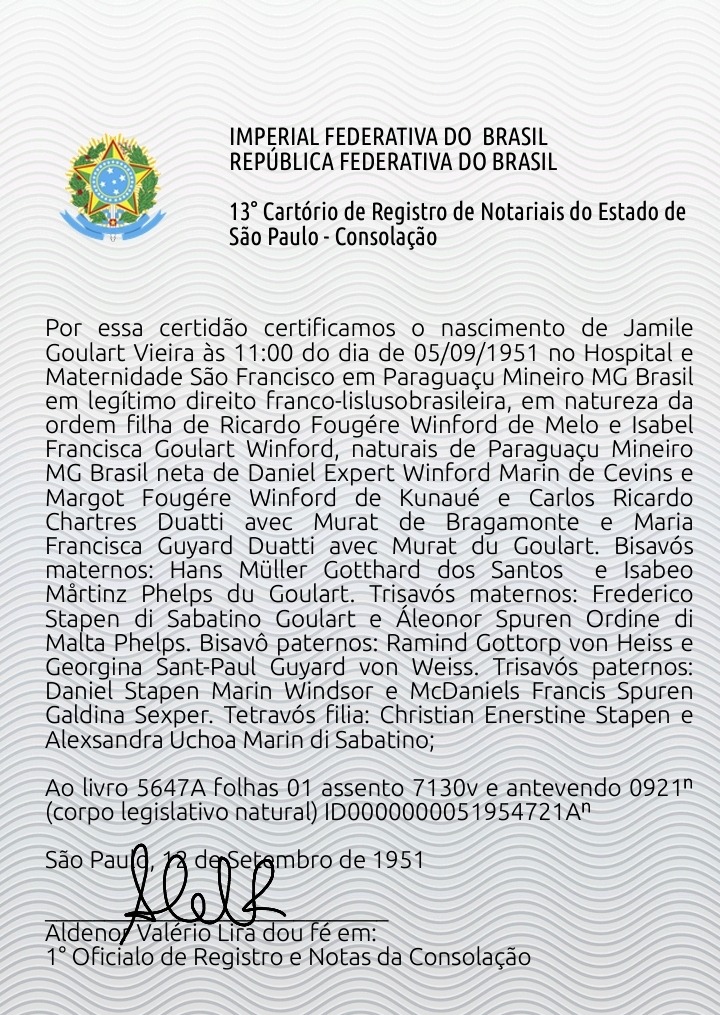 Inscription législative ordinaire de Sa Majesté la Reine de naissance en migration fédérative et de son fils Son Altesse le Prince en représentation.